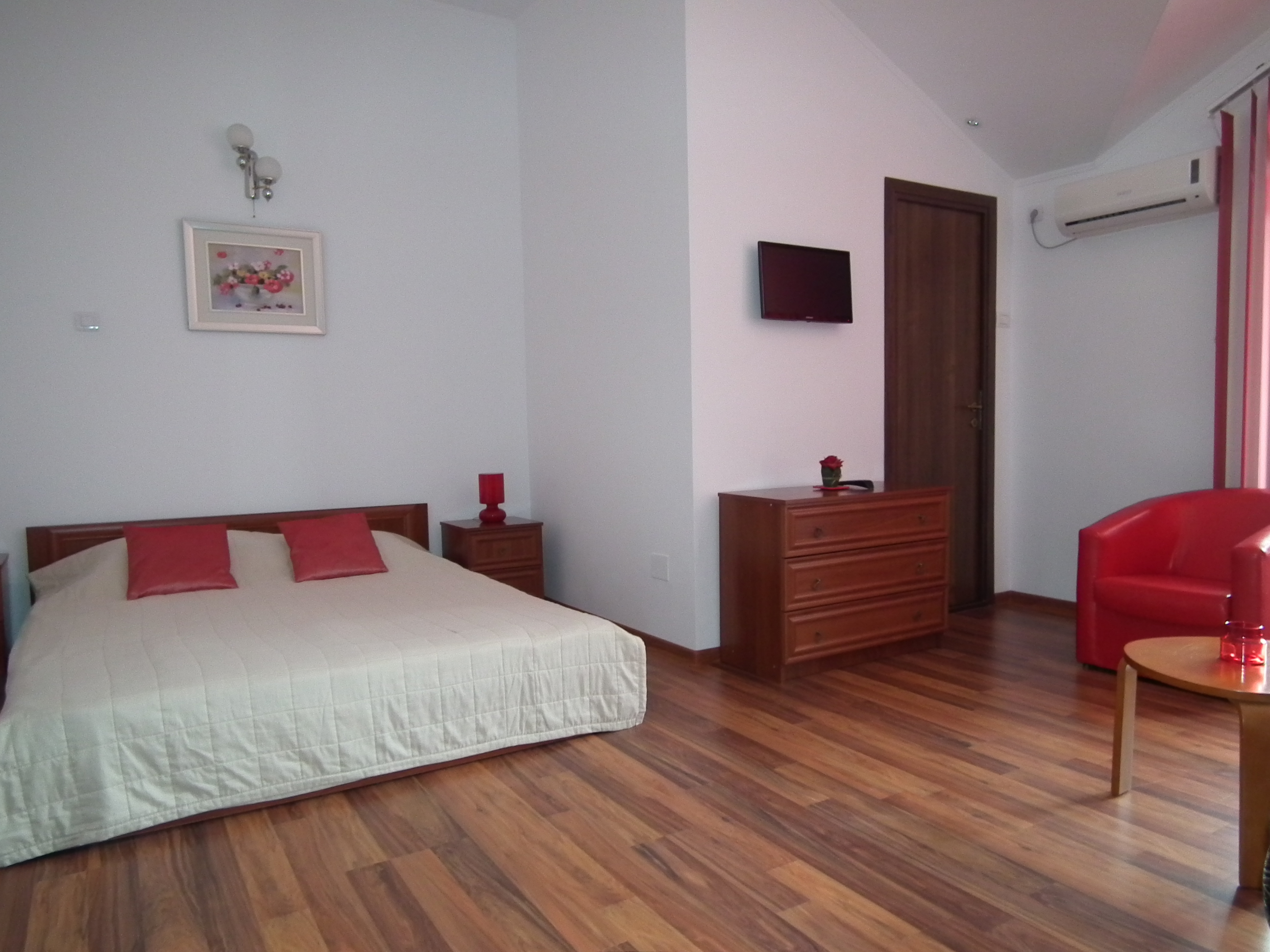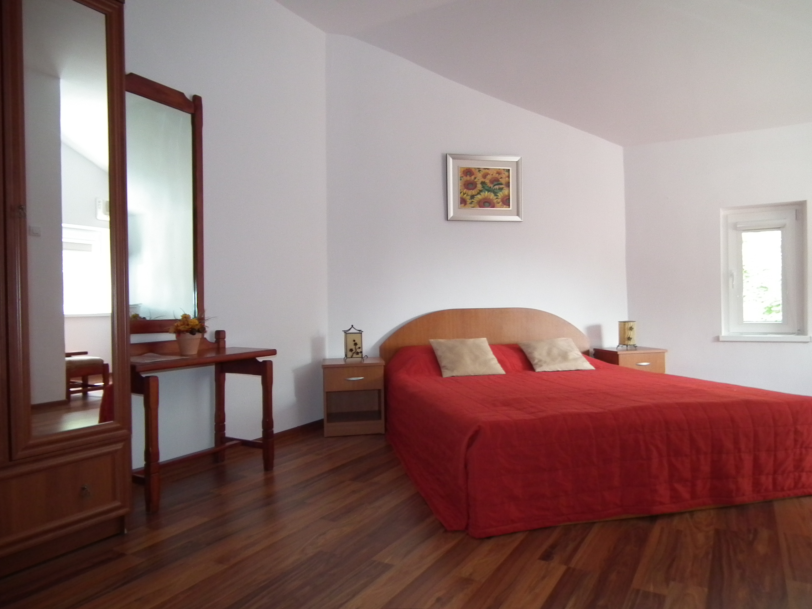 Pensiunea dispune de 8 camere: 4 camere duble standard si 4 camere duble superioare distribuite in doua corpuri de cladire: mare (A) si mic (B).